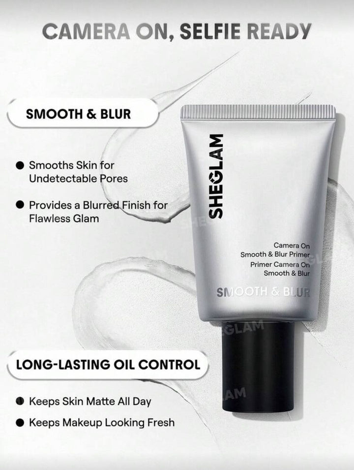Experience a flawless complexion with SHEGLAM Camera On Smooth & Blur Primer. Designed to minimize the appearance of pores and fine lines, this primer creates a smooth, matte canvas that enhances makeup longevity. Its lightweight formula blurs imperfections and controls shine, ensuring your skin looks camera-ready all day. Ideal for professional finishes and everyday wear.