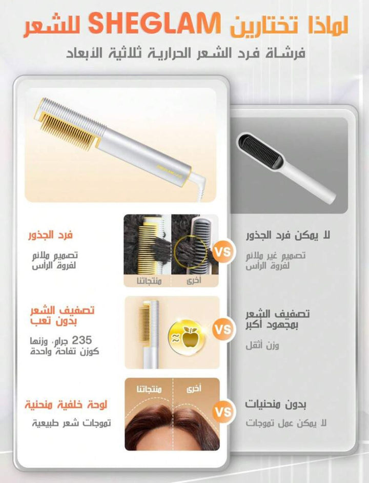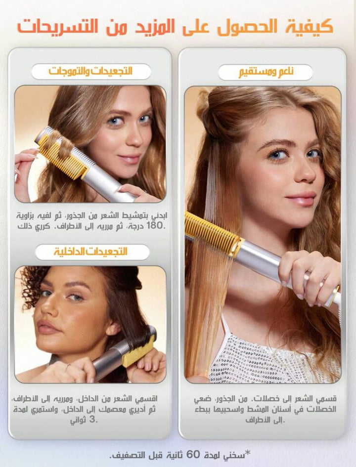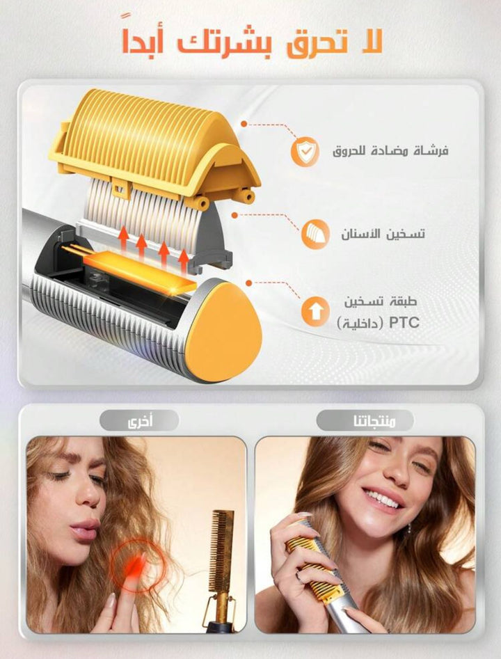 [3D Anti-Scalding & Curved Back Straightening Brush, 4-In-1 Styling Brush] This Sleek Chic 3D Thermal Straightening Brush adopts a 3D anti-scalding design, which can completely avoid scalding the scalp and skin. The 25 sharp-angled comb teeth make it easier to grab the hair and slide through the hair easily to reduce tangles. The scalp-fitted design can straighten your hair to the maximum extent, and the curved back design allows the hair to bypass the back plate for curly styling.
