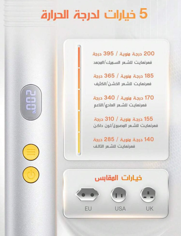 This Sleek Chic 3D Thermal straightening comb has 5 temperature settings, from 160°C(320°F) to 200°C (392°F) salon high temperature.