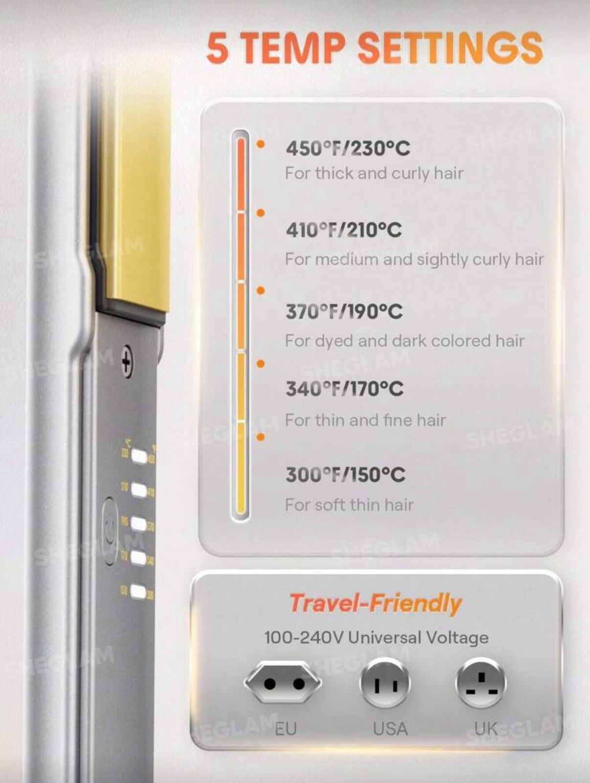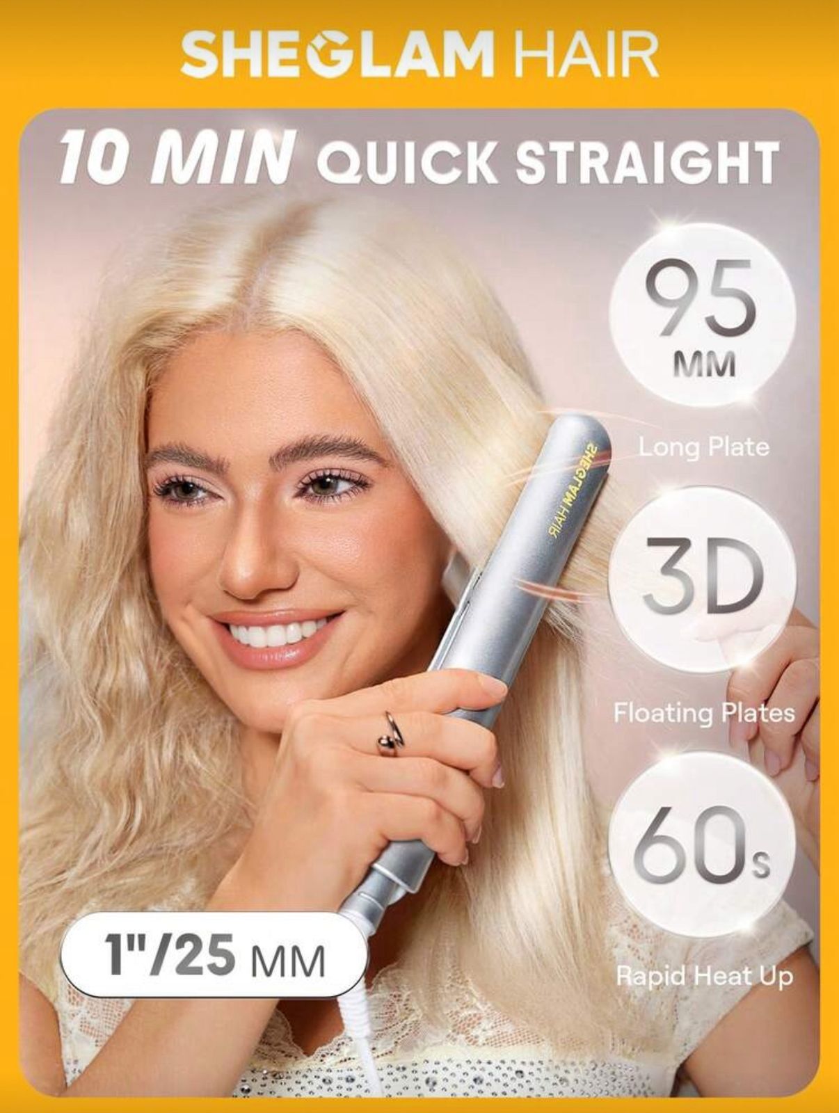SHEGLAM HAIR Sleek Chic Insta-Heat Straight Styler,2-IN-1 Straight & Curly Hair