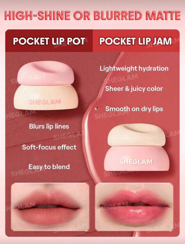 The SHEGLAM Bounce Putty Pocket Lip Pot offers a smooth, creamy formula that delivers rich, vibrant color with a lightweight feel. Its compact, portable design allows for easy application on the go, ensuring precise lip definition and long-lasting wear. Ideal for those seeking a combination of comfort and bold pigmentation in a convenient pot format.