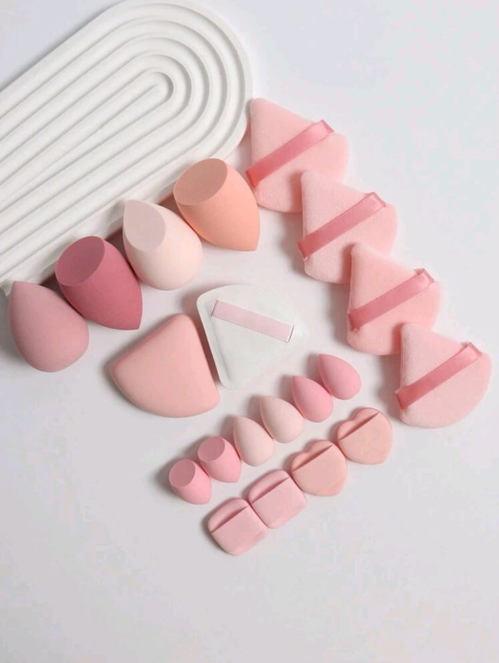 2 Air Cushion Puff, 4 Powder Puff, 4 Makeup Sponge, 6 Mini Makeup Sponge, 4 Mini Air Cushion Puff. Liquid, Cream And Powder Foundation Makeup Sponge In Multiple Colors, Latex-Free Dry And Wet Use Foundation Makeup Sponge Suitable For All Skin Types. Made Of Ultra Soft Velvet, Designed For Shaping, Eye Makeup And Corners. Includes Air Cushion Puff, Latex-Free Blending Sponge And Makeup Sponge For Liquid Foundation, Powder And Concealer.