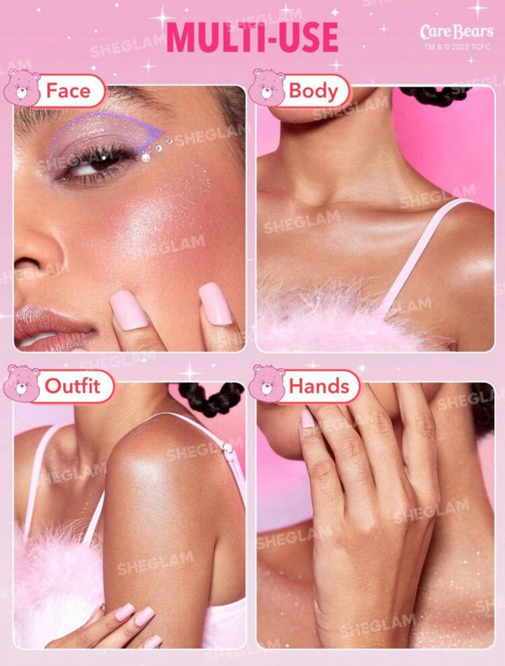 Experience the magical glow with Care Bears X SHEGLAM Catch Some Fun Highlighting Puff-Sparkle 4Ever....