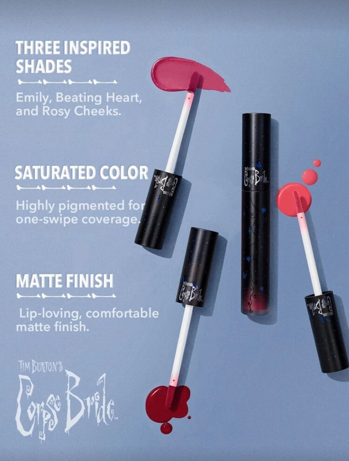 Inspired by gothic romance, this long-wearing liquid lipstick delivers a haunting matte finish that lasts all day. The Corpse Bride collection captures ethereal elegance with a sophisticated color palette designed for those who embrace dark, dramatic beauty. Formulated for comfort and precision, the lightweight formula glides effortlessly while resisting smudging and fading. Perfect for creating bold, statement looks that endure from day to night.
