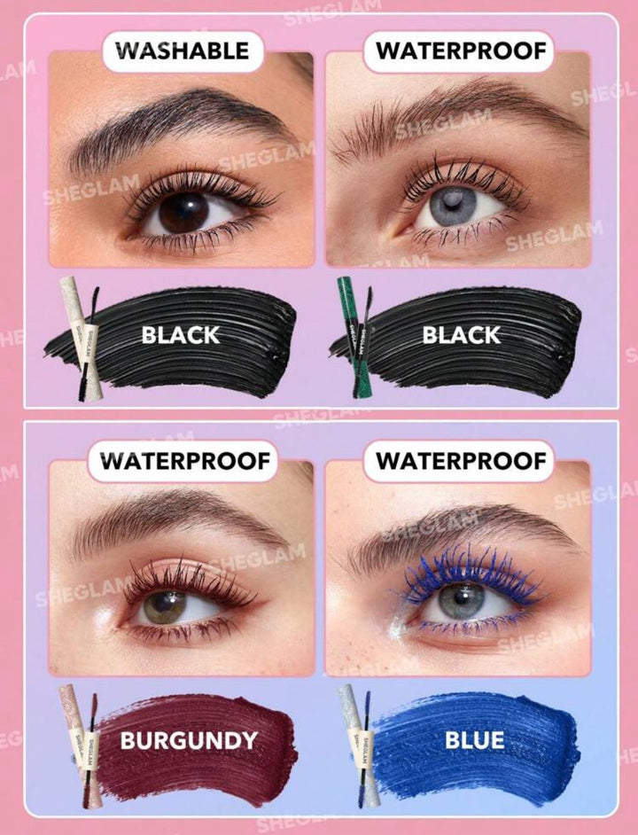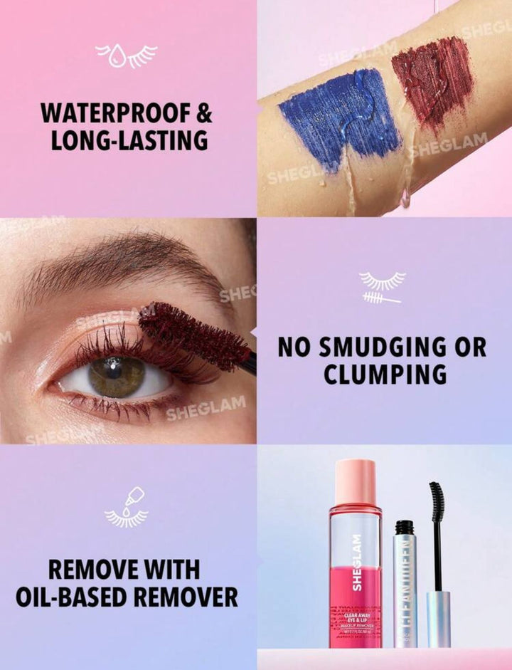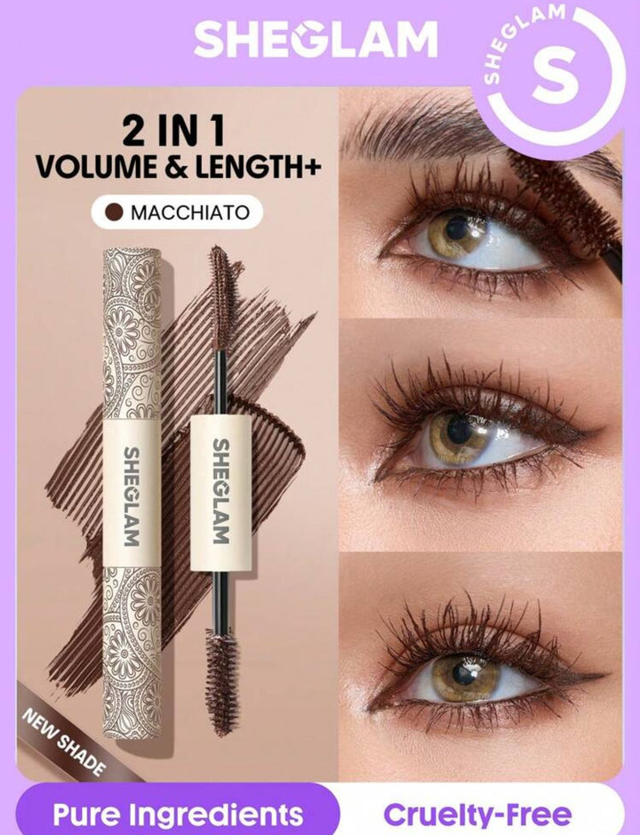 Our VIRAL dual-ended mascara just got a colorful upgrade! The SHEGLAM All-in-One Volume & Length Mascara features a dual-ended brush with two different quick-drying, smudgeproof formulas. Apply together or separately for a totally custom, clump-free look that delivers intense volume, length, curl, and separation!