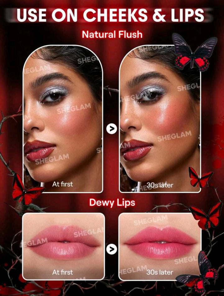 Experience a stunning transformation with SHEGLAM Bloodline Color Changing Blush Cream. This innovative formula reacts...