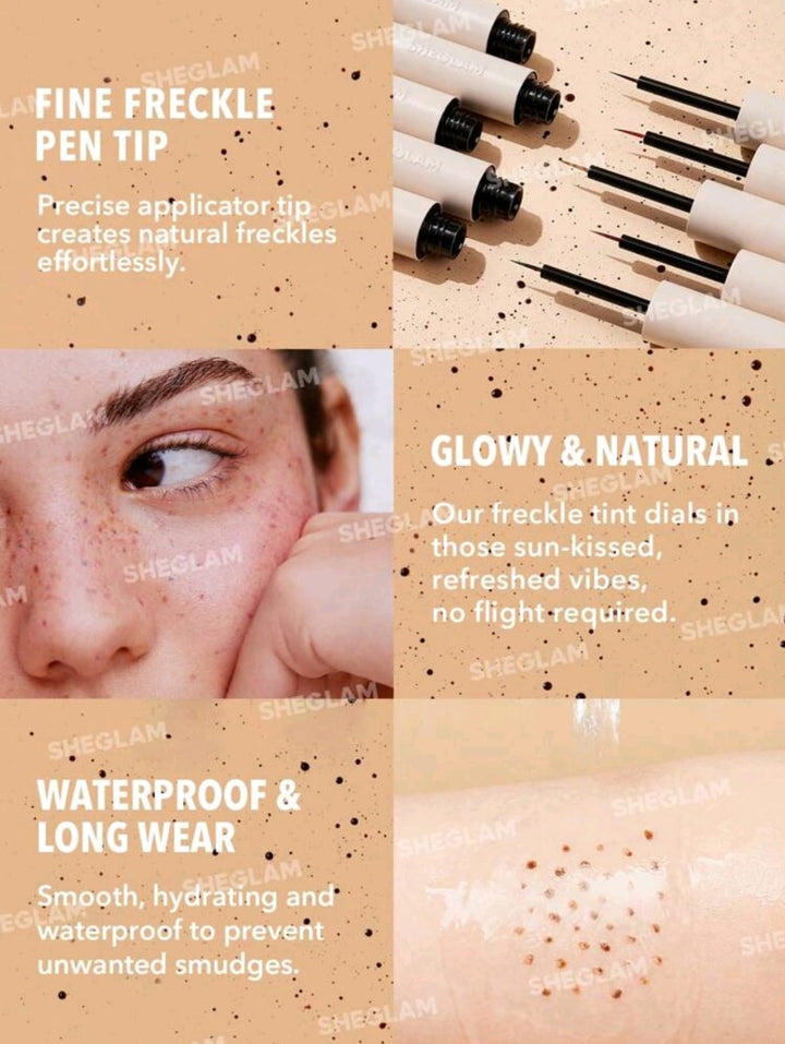 SHEGLAM Freck Please Freckle Tint-Tan offers a natural-looking freckle tint that enhances your complexion with subtle warmth. Designed for easy application, this tint blends seamlessly to create a sun-kissed effect, adding dimension and a youthful glow to your skin. Ideal for those seeking a delicate, customizable freckled look without the commitment of permanent makeup.