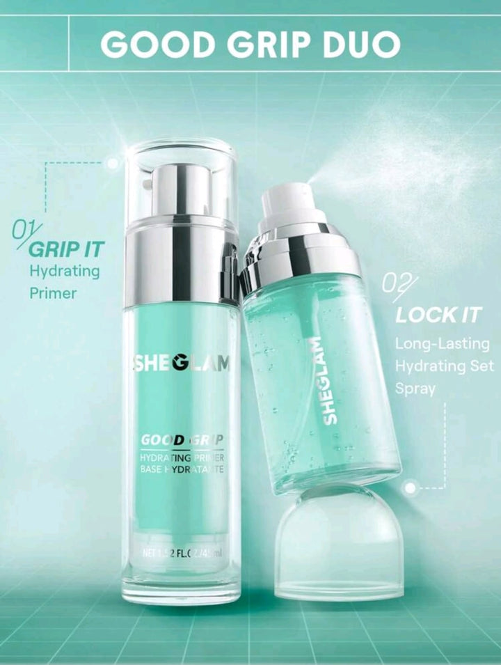 SHEGLAM Good Grip Hydrating Prime & Set Spray is designed to enhance makeup longevity while providing a refreshing hydration boost. This dual-purpose formula primes the skin for flawless makeup application, ensuring even texture and improved adherence. After makeup, it locks in your look, reducing smudging and fading throughout the day. Its hydrating properties soothe and replenish the skin, leaving a comfortable, natural finish without stickiness. Ideal for all skin types, it supports a balanced complexion and lasting radiance.