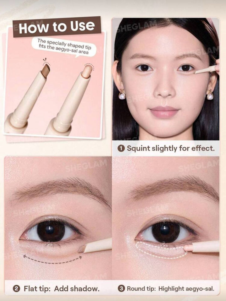 Achieve the coveted aegyo-sal effect with this dual-ended precision pen. One end delivers a luminous highlight to accentuate the under-eye area, while the other provides a subtle contouring shade for definition. The lightweight, buildable formula blends seamlessly without creasing, creating the illusion of fuller, more youthful eyes. Perfect for both everyday enhancement and dramatic makeup looks, this versatile duo gives you professional-grade control over your eye makeup artistry.