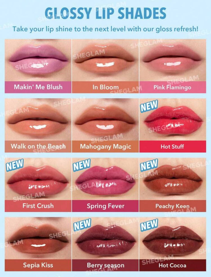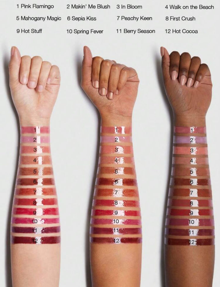 Peachy Keen, Sepia Kiss, Spring Fever, Hot Stuff, Hot Cocoa, Mahogany Magic, Pink Flamingo, First Crush, Berry Season, Walk on the Beach |