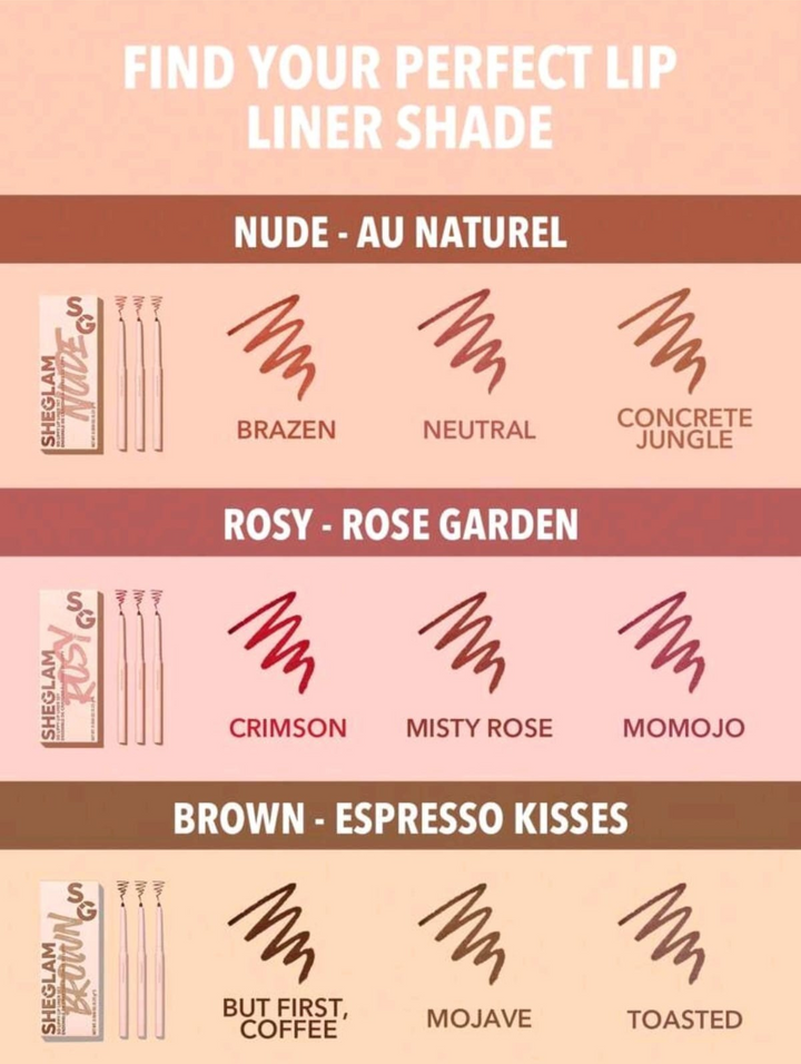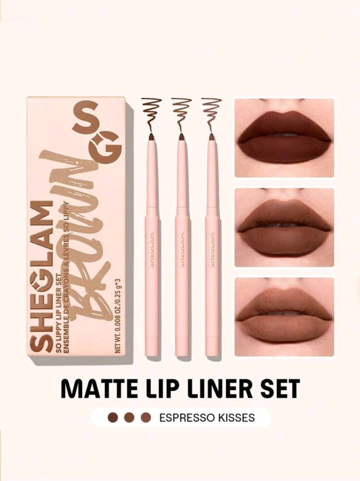 Enhance your lips with the SHEGLAM So Lippy Lip Liner Set. With 3 soft matte shades, this set will provide long-lasting and precise definition while also keeping your lips moisturized. Achieve the perfect pout with ease and confidence.