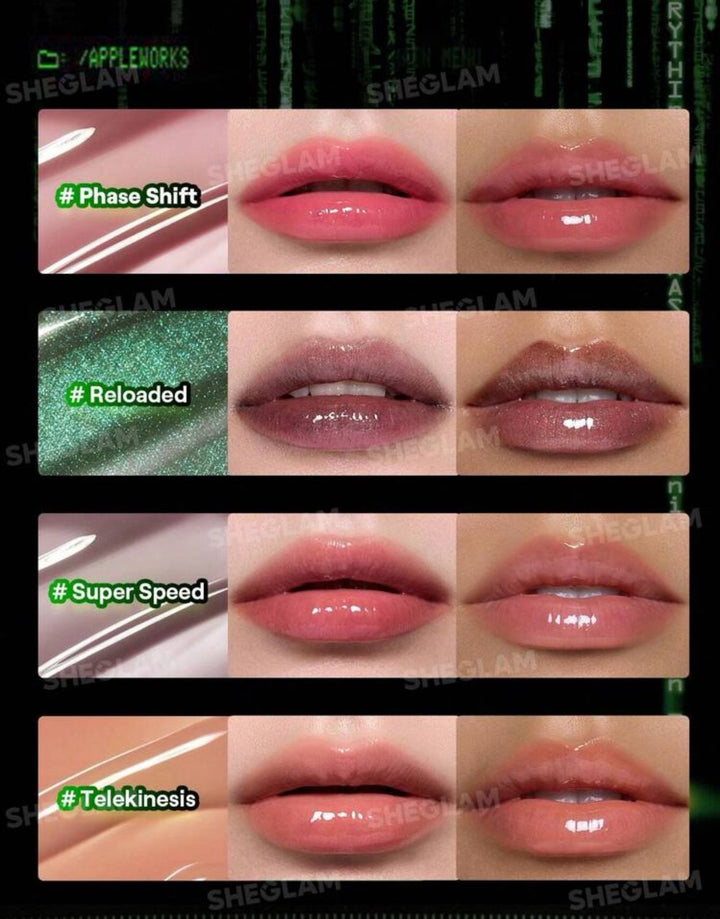 Experience a futuristic allure with The Matrix Resurrections | SHEGLAM Slowmo Lip Gloss in Phase...